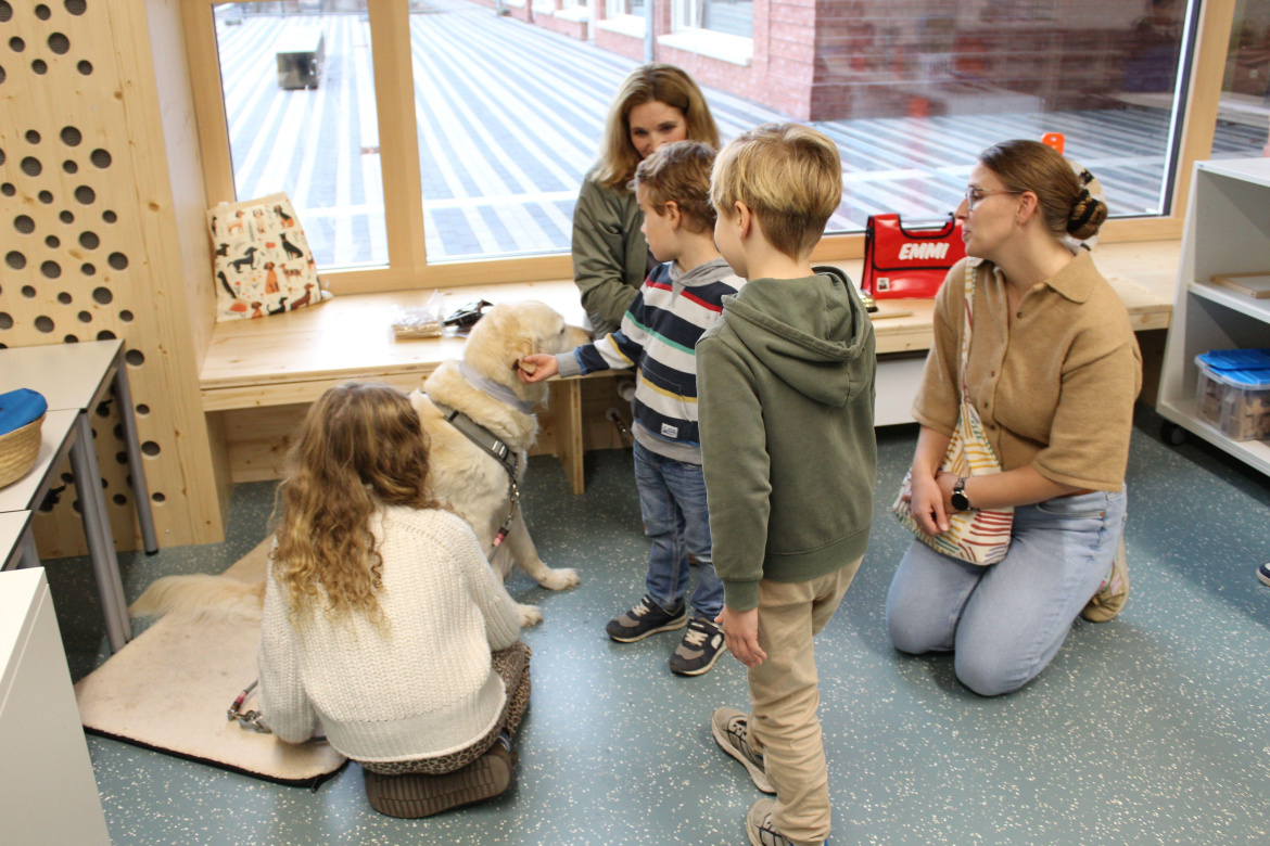 Unsere beiden Schulhunde Balu und Emmy konnten zeigen, dass sie auch viele Kinder nicht aus der Ruhe bringen können.