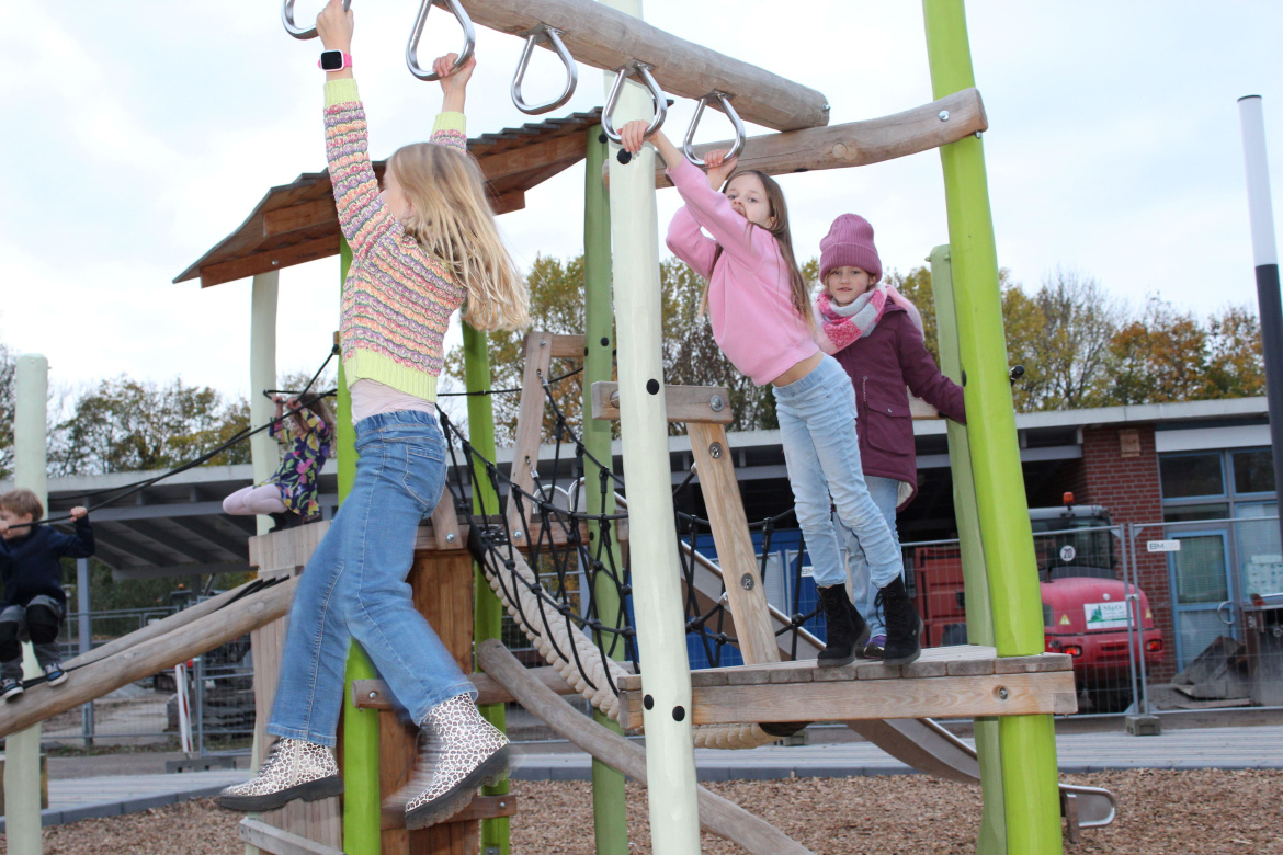 Trotz kaltem Wetter konnten auch die neuen Geräte auf dem Schulhof ausprobiert werden.![]()